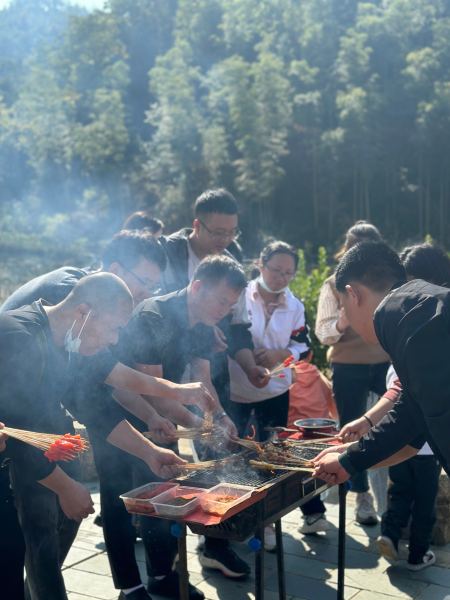 層林盡染,陽光暖暖,丹桂飄香,農(nóng)莊優(yōu)美的環(huán)境,美不勝收。大家一起登山望遠(yuǎn),感受秋日的溫暖。隨后,大家使出各自的本領(lǐng)開展燒烤,歡笑聲伴隨著縷縷炊煙縈繞在空中,大家分享著燒烤技巧,品嘗著各種美食,望著眼前的美景,感受著天然合一,人與自然的和諧相處,其樂融融也。