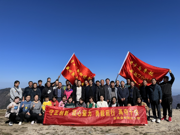 團建活動由自駕牛草山、攀登天河尖、趣味游戲、炭火燒烤等部分組成,縣分公司一線營業(yè)人員、攬投人員、后臺管理人員及部分職工家屬共60余人參與了活動。早上7點集合出發(fā)自駕牛草山,部分先行到達車輛觀看了牛草山云海日出,汲取滿滿的正能量;9點起車隊一行開始穿越10公里的“自駕天路”,行駛在大別山屋脊,一路風車相伴左右,欣賞香山葉正紅的沿途美景,駐車后步行3公里攀登大別山最高峰“天河尖”,勝利旗幟在山頂飄揚;中午簡單就餐后,團隊舉行了趣味游戲活動,每一個活動都需要大家相互配合才能完成,各組隊員都積極參與小組討論,出謀獻策,尋求加速勝利的方法,為了共同的目標緊密的團結(jié)在一起;游戲結(jié)束,大家齊聚露臺點燃炭火,燒烤正式拉開帷幕,在整個活動過程中,大家都是歡聲笑語,成員之間的關系也得到進一步融合。