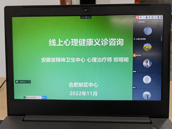 為持續(xù)關(guān)愛職工心理健康,緩解疫情等特殊時(shí)期的心理壓力,11月25日下午,合肥郵區(qū)中心局工會(huì)舉辦線上心理健康義診咨詢活動(dòng),邀請安徽省精神衛(wèi)生中心心理治療師圍繞疫情時(shí)期心理健康呵護(hù)、工作壓力緩解和睡眠障礙克服等進(jìn)行了義診及互動(dòng)交流。合肥郵區(qū)中心有60余位職工參與了義診咨詢活動(dòng)。
