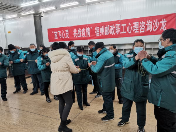 12月30日,宿州郵政工會組織開展“放飛心靈 共戰(zhàn)疫情”職工心理咨詢沙龍活動,30名一線攬投人員代表參加了本次活動?;顒诱\邀國家心理學(xué)碩士、二級心理咨詢師張老師走進(jìn)郵政基層,與職工開展面對面心理健康沙龍活動。