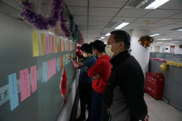 工會充分利用走廊過道的優(yōu)勢,布置了現(xiàn)場,近兩百條的五彩謎條隨風(fēng)飄揚,營造了良好的節(jié)日氛圍?;顒右婚_始便吸引了大批職工前來參與,大家駐足在燈謎前絞盡腦汁思考著答案?;顒蝇F(xiàn)場不時的還能聽見為猜出答案而歡呼雀躍的聲音。職工們穿梭其間,流連忘返,構(gòu)成了一道獨特的風(fēng)景畫。
