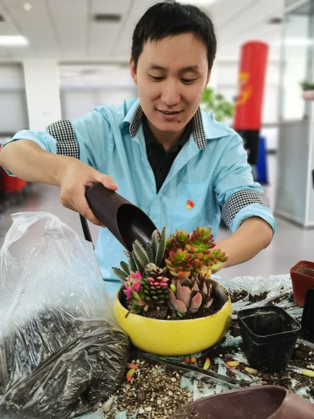 活動伊始,老師通過互動的方式,講解了多肉植物的歷史,喜好的環(huán)境、栽培和繁殖方法等,包括澆水、日照、病蟲害防止等生活中常見的問題,在DIY環(huán)節(jié),大家躍躍欲試,紛紛手持小工具饒有趣味地種植起來,一邊歡聲笑語,一邊請教老師意見,一會兒功夫,填土、配色、種植……一盆一盆有模有樣的多肉盆栽完工。