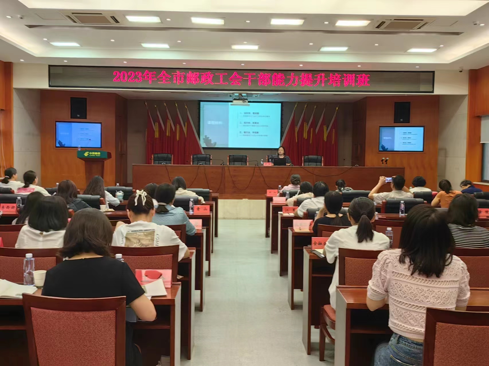 為加強(qiáng)全市郵政工會(huì)干部隊(duì)伍建設(shè),提高工會(huì)干部的思想政治素質(zhì)和工作能力,9月12日,武漢市郵政工會(huì)舉辦了2023年全市郵政工會(huì)干部能力提升培訓(xùn)班。此次培訓(xùn)旨在學(xué)習(xí)貫徹落實(shí)黨的二十大精神,進(jìn)一步理清工作思路、找準(zhǔn)工作定位、體現(xiàn)工作特色,開創(chuàng)全市郵政工會(huì)工作新局面。市郵政工會(huì)全體人員、各區(qū)分公司辦公室主任、工會(huì)干事,市分公司各直屬單位、市寄遞事業(yè)部工會(huì)干事,市分公司機(jī)關(guān)工會(huì)委員會(huì)全體委員,市分公司各部室工會(huì)小組長(zhǎng)等共50余人參加了本次培訓(xùn)。