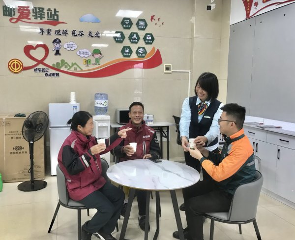 雙“十一”前夕,泰和縣分公司在繼城西郵政所“郵愛驛站”建立后,又在東門郵政所新建了“郵愛驛站”,并與全縣各郵政網(wǎng)點一道,全部面向全行業(yè)快遞公司開放,讓辛勞的同行兄弟進來歇歇腳、喝杯熱水,共同搭建和諧友愛的共享空間。