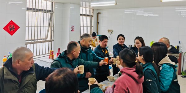 張燈結(jié)彩,滿滿的年味,廟行、聚豐園路等支局組織堅守一線崗位的“快遞小哥”歡聚一堂,共享年夜飯,支局領導班子、部門工會主席給大家拜年,送上春節(jié)祝福。