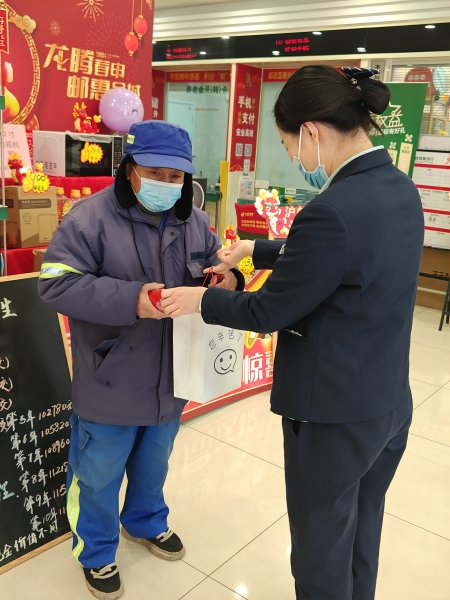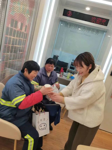 春節(jié)期間,當(dāng)有環(huán)衛(wèi)工人、快遞小哥等戶外勞動(dòng)者來愛心驛站休憩時(shí),來自網(wǎng)店的工作人員第一時(shí)間將準(zhǔn)備好的熱紅糖茶、八寶粥、暖寶寶貼等送到戶外工作者手中,確保戶外工作者在低溫環(huán)境下能夠得到及時(shí)有效的防護(hù)和補(bǔ)給,并送上了新春祝福。