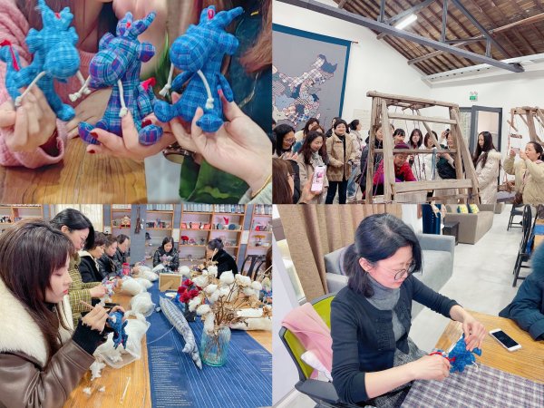 《江風(fēng)海韻》中所提,崇明土布紡織生產(chǎn)工藝到明朝中葉已十分繁盛,流傳已有五百多年的歷史,如今已被列為上海市非物質(zhì)文化遺產(chǎn)項(xiàng)目。走進(jìn)座落于惠民村中部的崇明土布創(chuàng)意活動(dòng)館,女職工們步入四四方方的鄉(xiāng)村庭院式展館中,于一匹匹色彩斑斕、寓意美好的布匹中,感知早期“崇明姑娘”的勤勞與智慧;于一件件樸實(shí)而靈巧的作品中,感觸土布手工作品略顯粗糙的天然肌理感與細(xì)密精致的針腳形成的獨(dú)特視覺沖擊,輔以精巧的配色和拼接手法后,作品承現(xiàn)出的一種古樸而靈秀的美。女職工們聆聽女館長(zhǎng)講述創(chuàng)業(yè)的勵(lì)志故事、親身體驗(yàn)織布的樂趣、親自縫制龍年土布手工作品,感受著現(xiàn)代鄉(xiāng)村產(chǎn)業(yè)美學(xué)和非遺文化的魅力,同時(shí)也堅(jiān)定了女職工們昂揚(yáng)奮進(jìn)的信心。