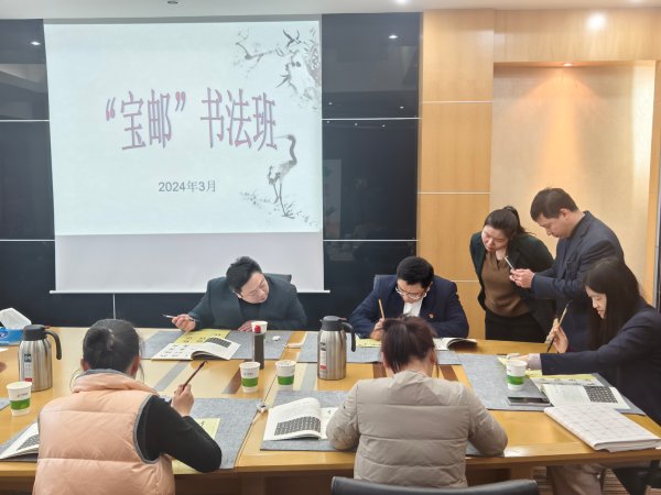 為進(jìn)一步提升職工文化素質(zhì),弘揚(yáng)傳統(tǒng)文化,書寫華夏文明,寶山郵政工會(huì)搭建了“寶郵”書法興趣班。3月5日,“寶郵”書法興趣班在機(jī)關(guān)活動(dòng)室正式開班啦。興趣班邀請了黨委書記、總經(jīng)理戴朝輝授課,他帶領(lǐng)10余名書法愛好者一起感悟書法的魅力。