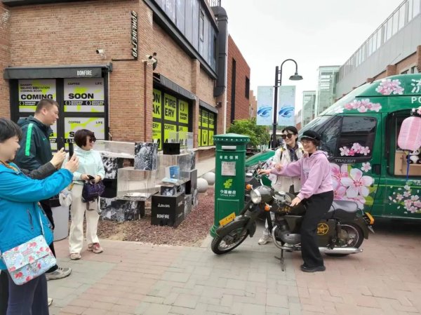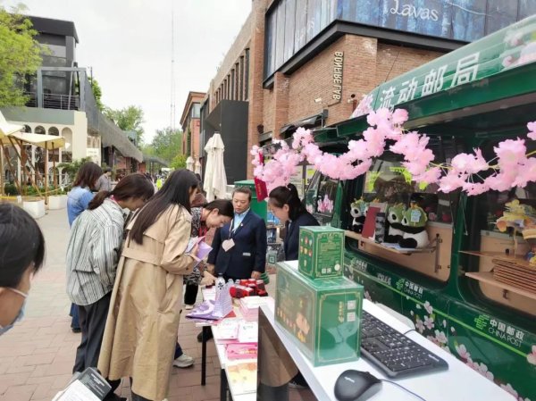 同時(shí),第十四屆北京國際電影節(jié)于2024年4月18日至4月26日舉辦,電影節(jié)九大大板塊之一的“北京市場”落戶于郎園Statio,并設(shè)置專業(yè)區(qū)、大眾區(qū)和集市區(qū)。朝陽區(qū)分公司通過流動(dòng)郵局的形式入駐服務(wù)“北京市場”,為電影節(jié)提供服務(wù)。利用具有春季特色的流動(dòng)郵車、個(gè)性化明信片打印機(jī)、老式郵筒和郵政投遞摩托車等元素,打造了一個(gè)獨(dú)具特色的“流動(dòng)郵局”。 這個(gè)流動(dòng)郵局不僅提供了各種電影題材的郵品和文創(chuàng)產(chǎn)品,還展示了中國郵政深厚的文化和歷史底蘊(yùn)。